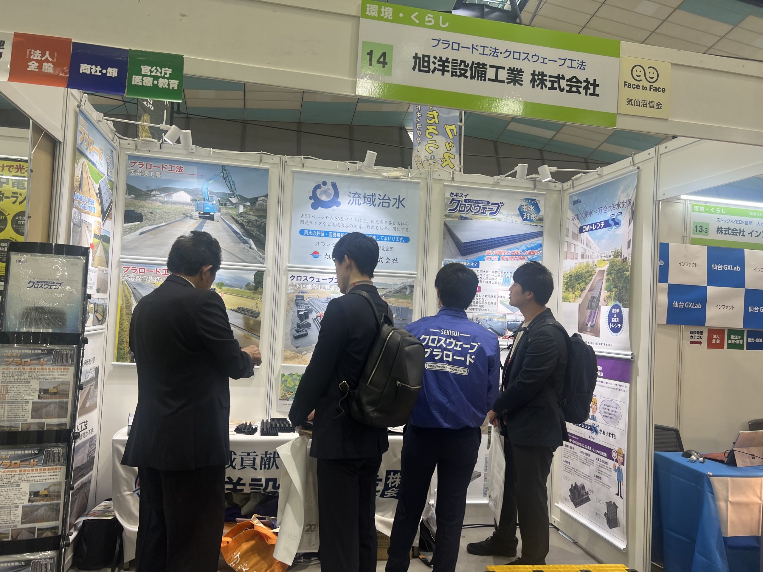 東北各地から来場いただいた企業のみなさま、また一般来場者のみなさまに、クロスウェーブ工法とプラロード工法について説明させていただきました。