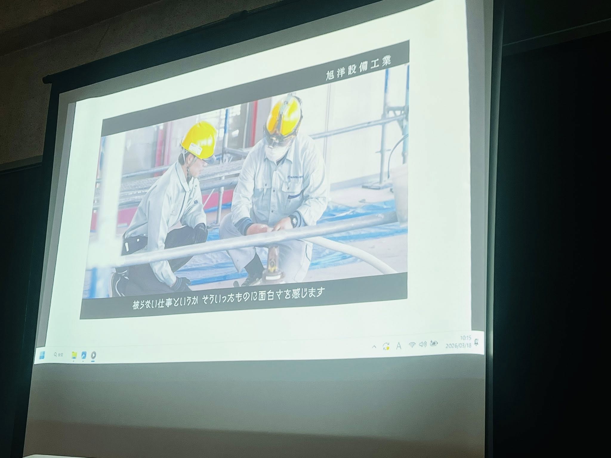 令和8年3月18日、地元企業による合同説明会に地域企業の方々とともに参加しました。40名以上の高校2年生の生徒のみなさんが参加。わたしたち企業の説明に熱心に耳を傾けていただきました。