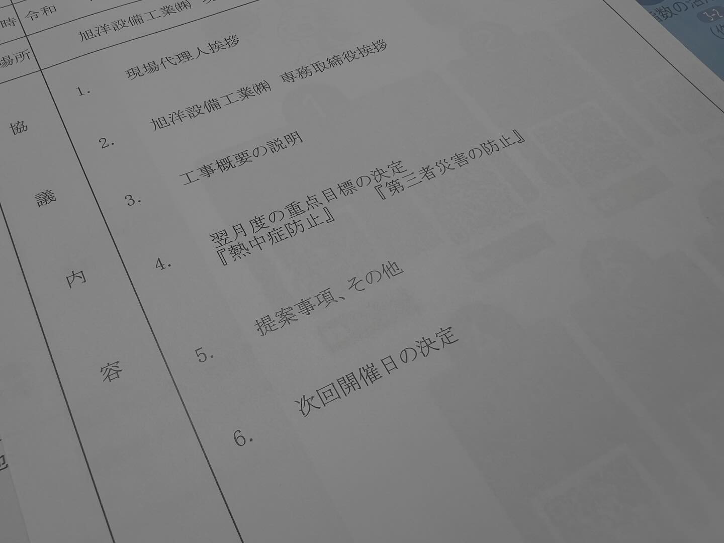 「安全衛生協議会 8月」 2025年8月27日 元請現場の安全衛生協議会を開催しました。 今月の重点目標は、熱中症防止と第三者災害の防止です。全作業所引き続き無事故無災害を目指してまいります。 #安全衛生協議会 #現場 #熱中症防止 #第三者災害防止 #無事故無災害 #交通安全 PREV 一覧 NEXT